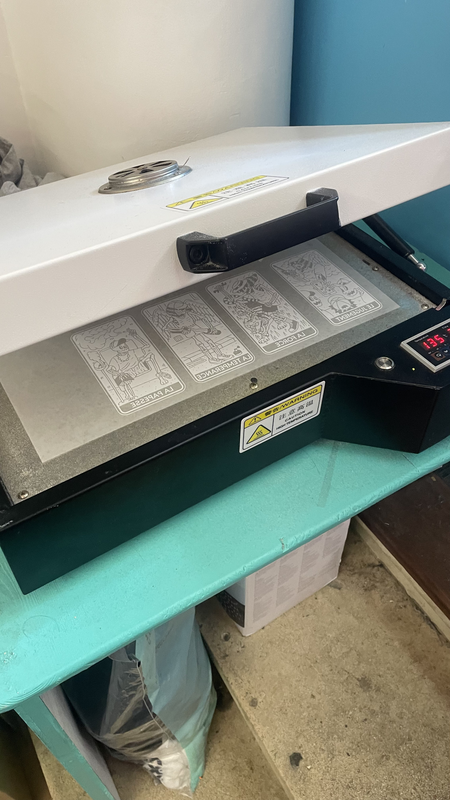La boutique possède également une machine de pré-traitement pour les t-shirts, qui applique un produit sur le textile pour que l’impression adhère mieux et reste durable après lavage. Enfin, il y a deux presses à chaud pour presser les t-shirts et fixer les impressions finales, que ce soit pour le flex, la DTF ou la broderie.