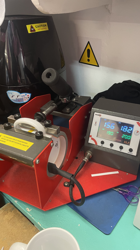 Il y a une imprimante spécifique pour les mugs, qui utilise un papier spécial pour transférer l’image sur la céramique. Une fois l’impression réalisée sur le papier, la mug est placée dans une presse à mug, qui chauffe le tout pour fixer l’image de manière durable. Cette machine permet de personnaliser facilement des mugs avec des photos, logos ou textes.